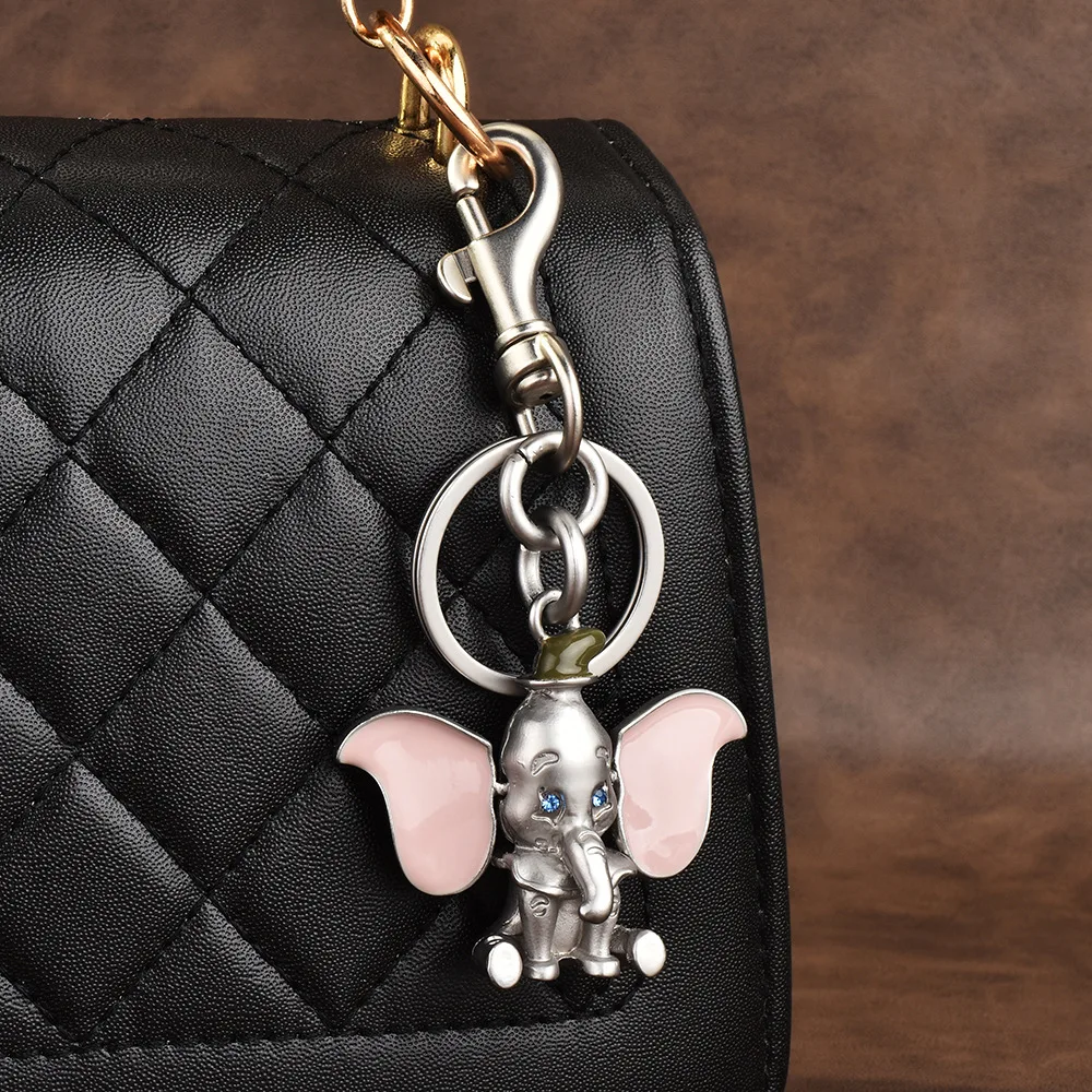 Bag Pendant Car Keychain Metal Elephant Cartoon Cute Ear Movable Accessory
